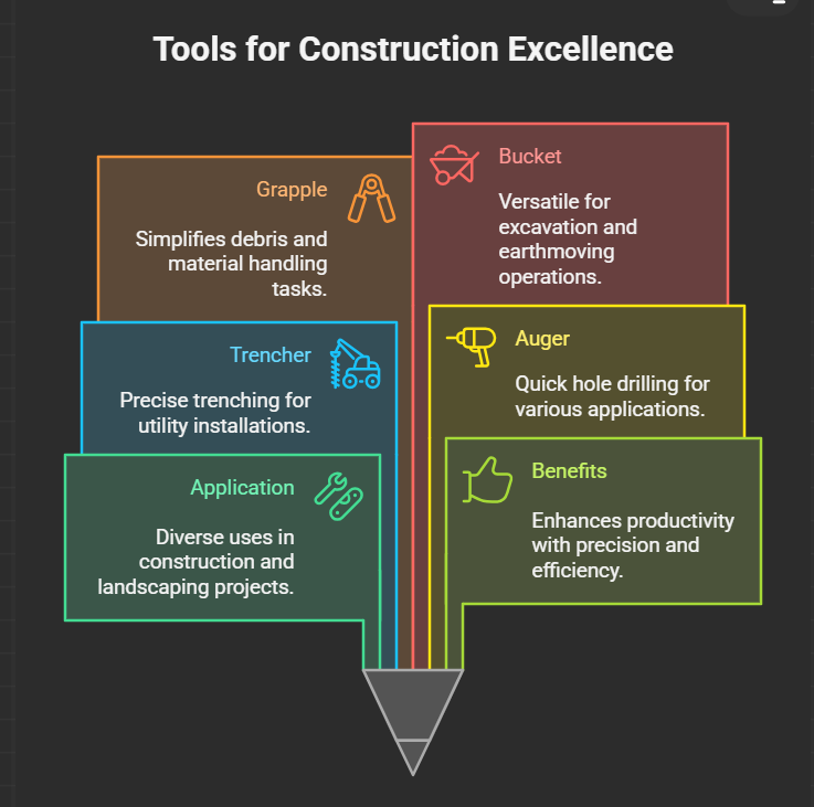 The use of these attachments brings about the productivity to be made on the sites are only part of the benefits; also, cost savings and improved safety are other contributions that they make. Right attachment opting comes from thorough consideration of requirements of the project, compatibility of the machine, and conditions of the environment.