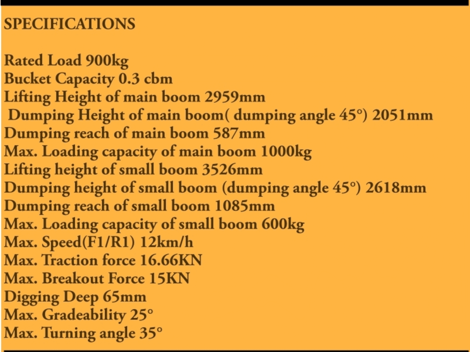 - Equipped with a 0.3 cbm bucket for efficient material handling.